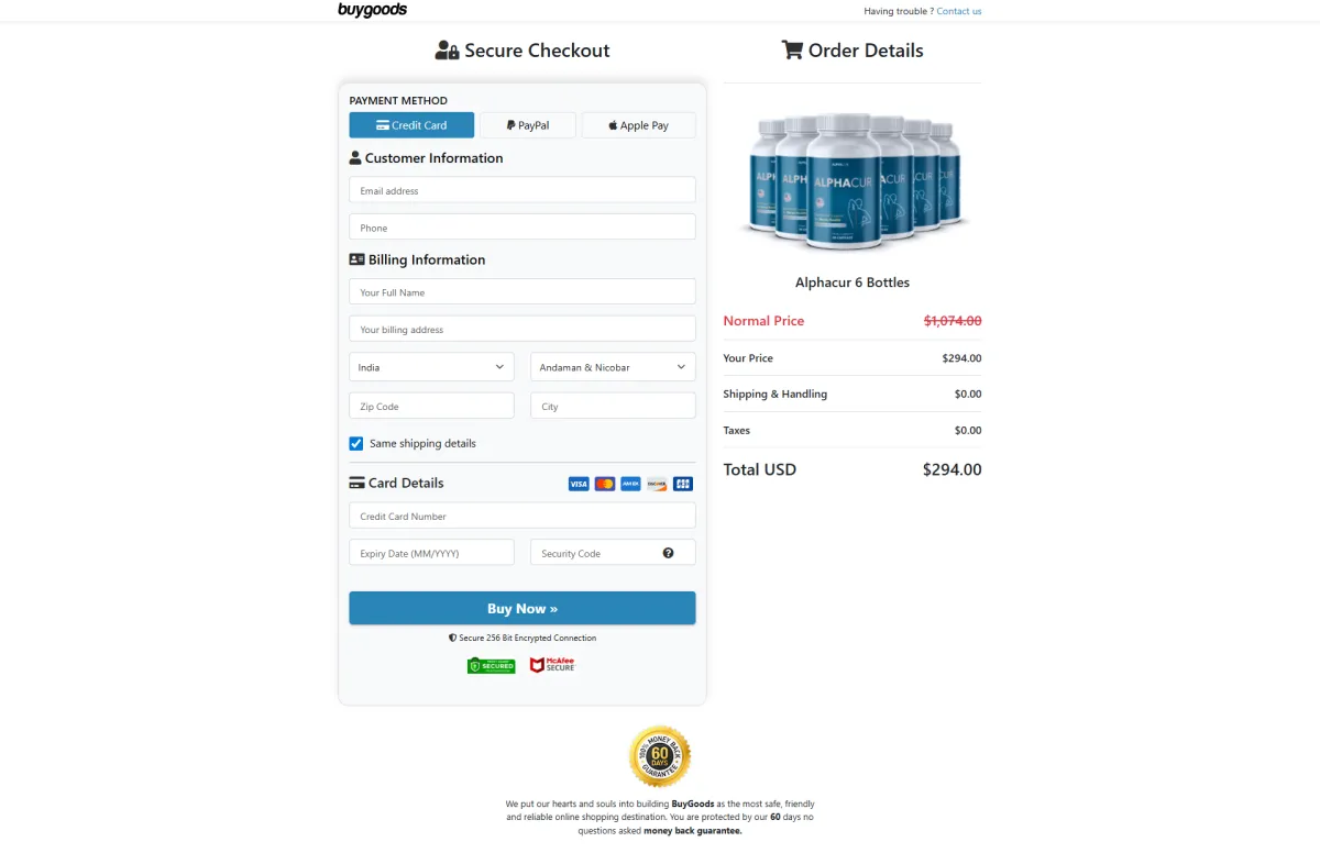 At AlphaCur, your security is our priority. All orders are processed through BuyGoods, a trusted global platform with advanced SSL encryption and robust fraud protection.